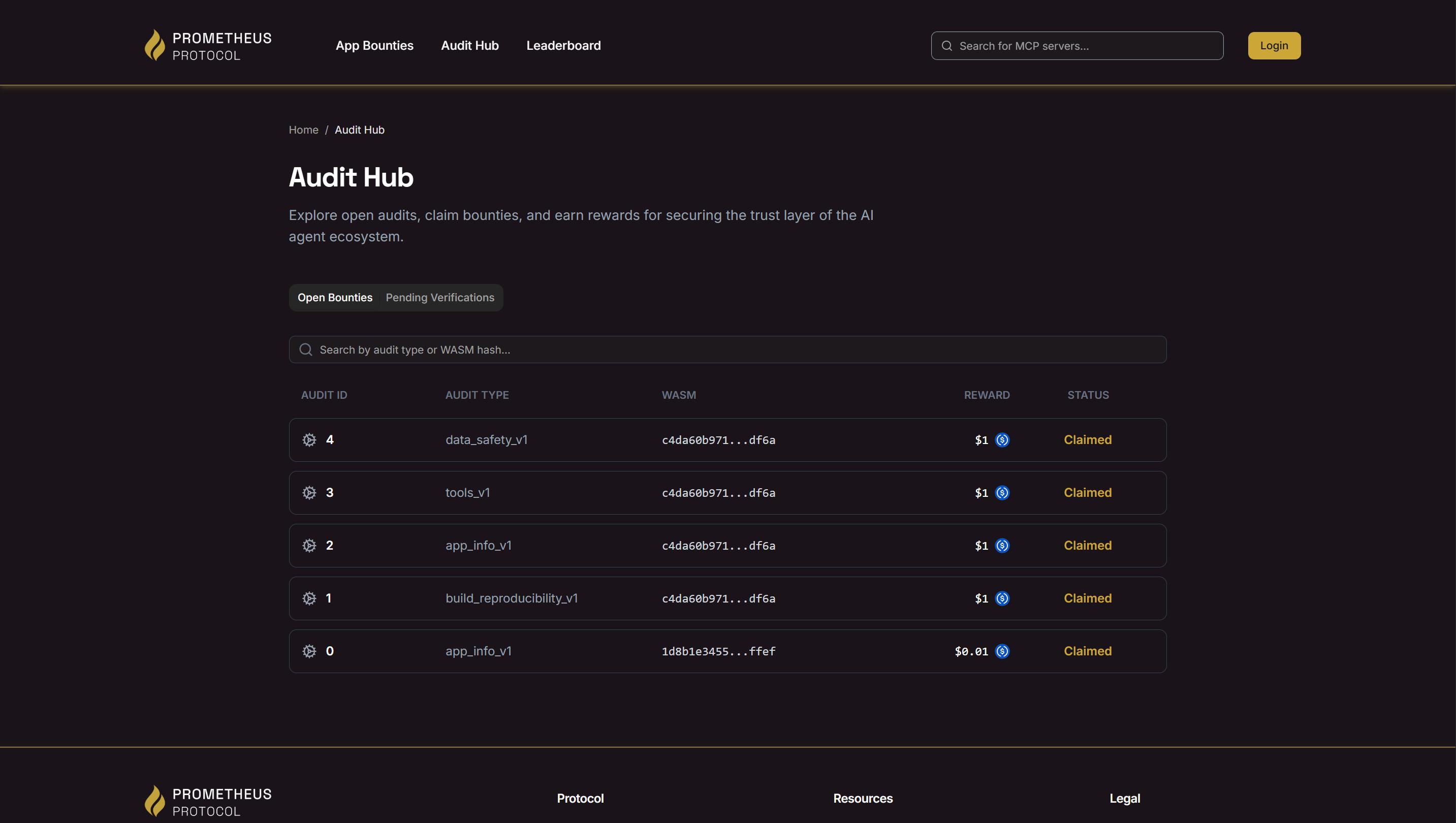 - Open: The audit is available for any qualified auditor to claim. (Note: The screenshot shows claimed audits, but open ones will appear similarly).